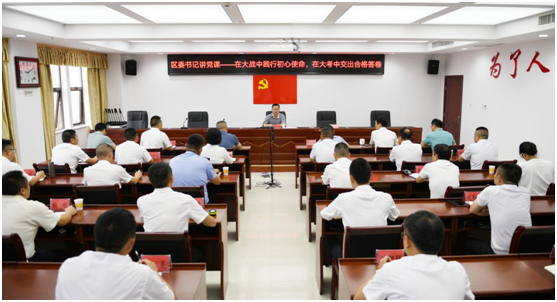 陈阁辉强调,今年6月29日,习近平总书记在中央政治局第21次集体学习时指出,基层党组织是贯彻落实党中央决策部署的“最后一公里”,充分体现了党中央对基层组织工作的高度重视。街道(乡)处在抓发展、促落实的第一线,担子更重、责任更大,必须要旗帜鲜明讲政治,始终信念坚定绝对忠诚。忠诚根在坚定信仰、贵在涵养情怀、重在担当责任,必须忠诚履职,始终守土有责、守土负责、守土尽责,做到无愧于组织、无愧于历史、无愧于良心,要不断增强辖区意识、发展意识,一门心思谋发展、抓发展,共同携手把楼区发展推向新的高度。要严格自律守规矩,始终清正在心一尘不染。要学会放下,学会为思想减负,及时调适心态、调优状态;要学会控制,时刻守住做人、处事、用权、交友的底线,始终立场坚定、清正在心;要学会共处,自觉维护班子集体权威,坚决执行班子集体决策,在团结共事中推动事业前进。
