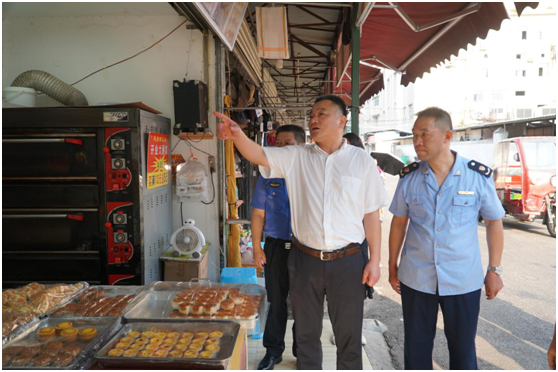 9月8日下午,区委副书记、区长黄建文先后来到奇家岭菜市场、花板桥小学,以及广济医院等地,实地督导周边环境卫生、宣传氛围等落实情况。副区长邓建华参加。