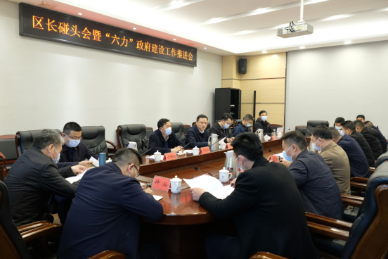 1月18日下午,区委副书记、区长白再兴主持召开区长碰头会暨“六力”政府建设工作推进会,传达学习全国安全生产电视电话会议精神,通报2021年度重要事项完成情况,研究部署后段工作。全体在家副区长参会,并就各自分管线上工作进行交流发言。