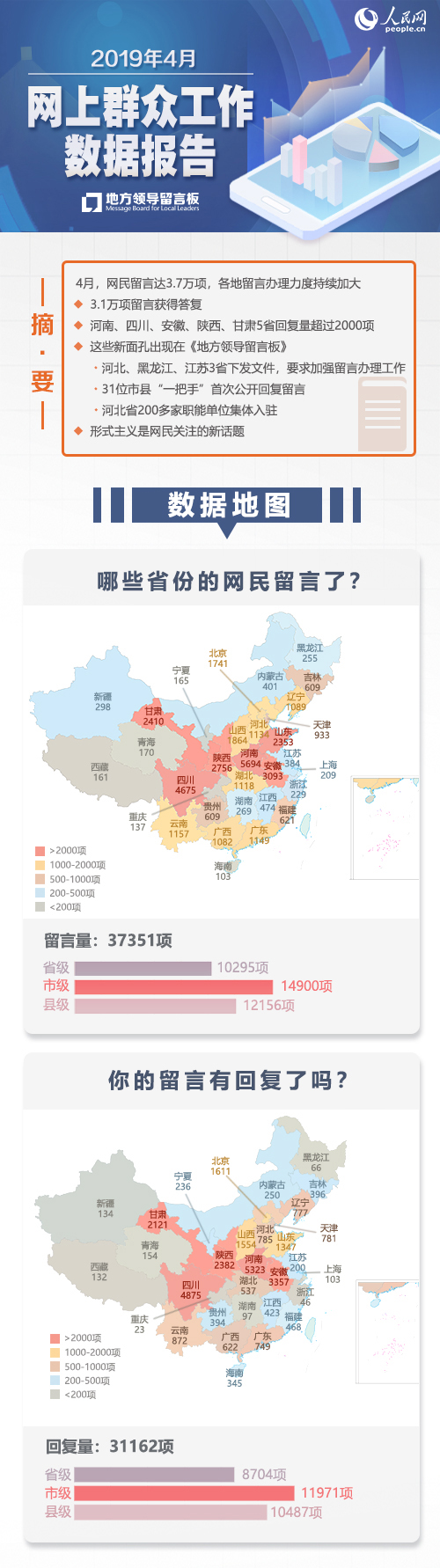 4月网上群众工作数据报告 3.1万项网民留言获答复