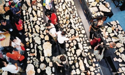 5月18日,郴州国际会展中心,市民在第七届中国(湖南)国际矿物宝石博览会上选购商品。当天,矿博会接待观众达2.8万余人次,人气持续爆棚。 湖南日报记者 傅聪 摄