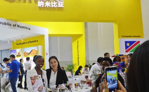 6月27日,湖南国际会展中心,观众与纳米比亚参展商合影留念。湖南日报记者