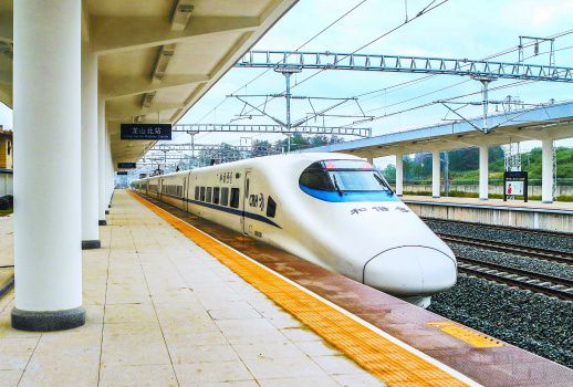 10月14日,编号为DJ5502次的和谐号电力动车组驶入黔张常铁路龙山北站。这是首次进入湘西州的动车组,它担负着黔张常铁路联调联试任务。黔张常铁路正线运营长度336千米,全线共设黔江、张家界西、常德等15个车站。预计年底正式通车。邓晶琎 曾祥辉 魏宏齐摄影报道