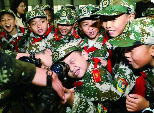 10月15日,学生们在参观军营装备。当天,武警郴州支队邀请郴州市第七完全小学600余名师生走进军营开展参观践学活动,师生们认真学习国防基础知识,参观各类库室,观看部分军事训练科目演示,零距离体验部队生活。李科 牟鑫斌 摄影报道