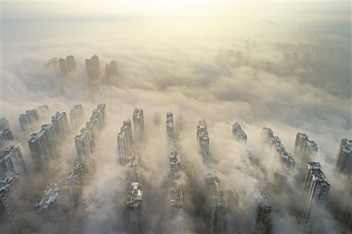 6月6日早晨,长沙市湘江沿岸,高楼在云雾中若隐若现。当天,雨后放晴的长沙云雾笼罩,整个城市仿佛成了“天空之城”,美不胜收。湖南日报记者 李健 摄