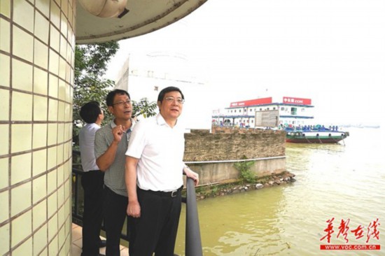 7月14日上午,省委书记杜家毫赴岳阳检查督导防汛工作,来到莲花塘水位站考察水文情势。