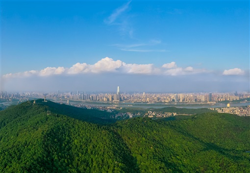 5月8日,长沙市晴空万里,蓝天白云映衬下的山水洲城显得格外秀美。 湖南日报·新湖南客户端记者 傅聪 摄