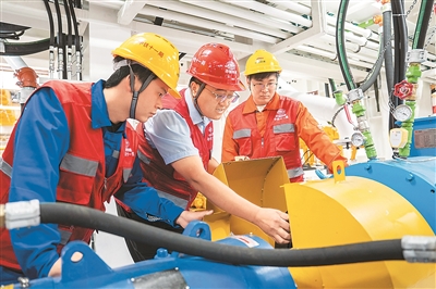 工人在检查设备情况。 新华社记者 陈思汗摄