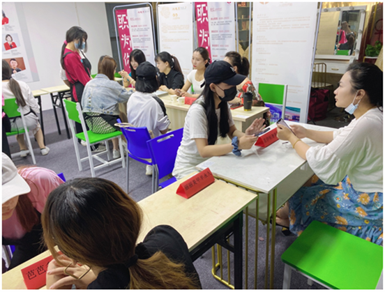 图为我区花漾美学职业培训学校举办首届美容师专场招聘会。