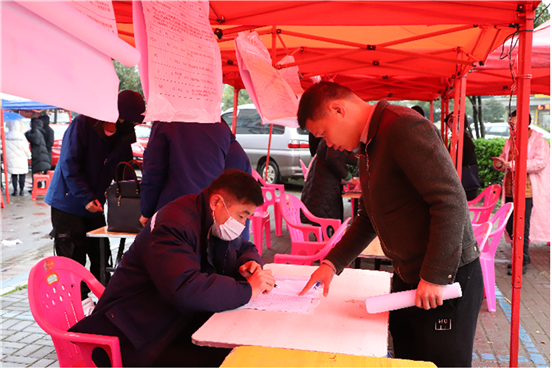 图为服务城陵矶新港区工作组联合区人社局和湖南城陵矶新港区社会发展部举办的“春风送真情 就业暖民心”专项招聘现场。