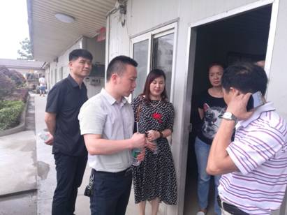 吕仙亭街道工委书记(左二)与辖区企业安全生产负责人进行交谈
