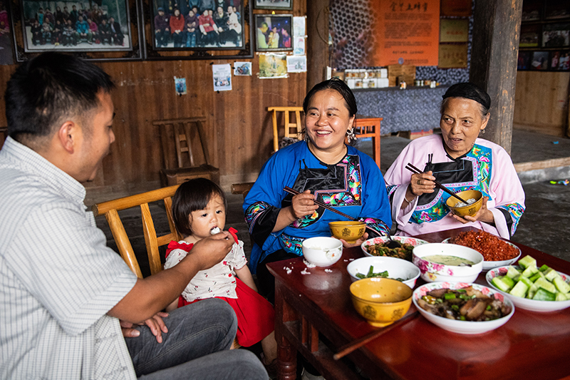 湖南省湘西土家族苗族自治州花垣县双龙镇十八洞村一户村民在吃午餐(2021年7月1日摄)。新华社记者 陈思汗 摄