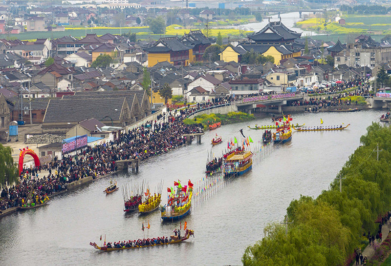 当日是清明节,江苏省兴化市举行茅山会船盛会,船只和选手齐聚茅山西大河,参加竞技和表演。茅山会船始于南宋,现已被列入国家级非物质文化遗产名录。