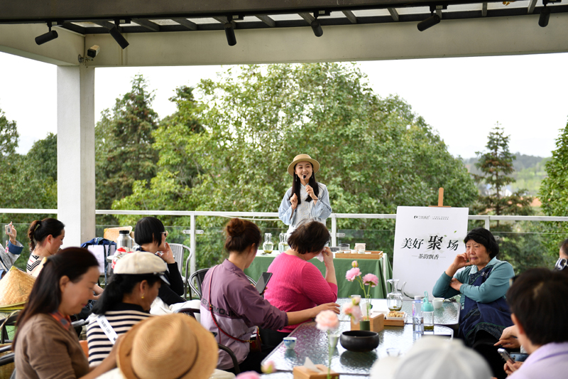 4月7日,工作人员在湖南省长沙市长沙县金井镇的金井茶旅融合产业园向游客科普茶文化。