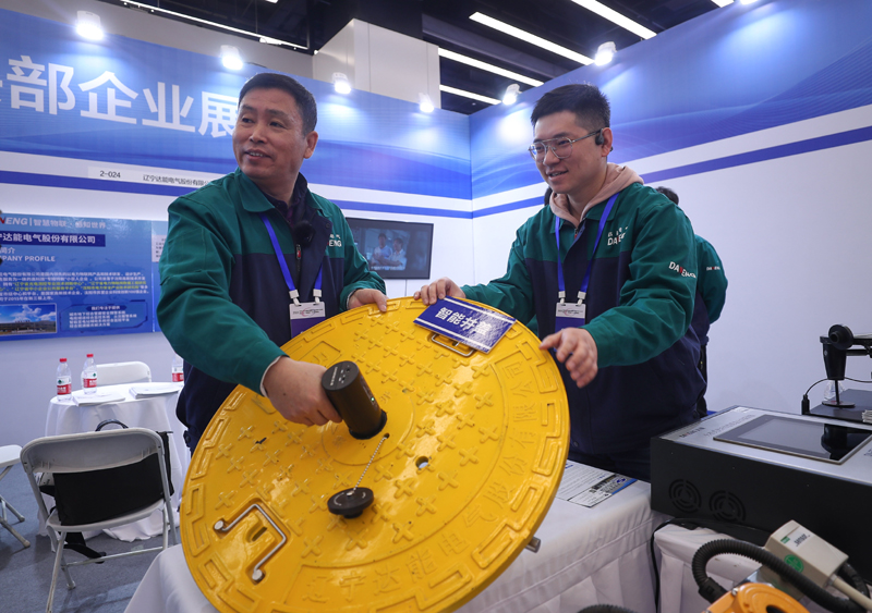 4月8日,参展商在2023中国中小企业发展大会“专精特新”中小企业展览会上演示产品。