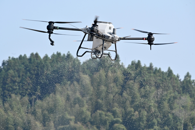 4月8日,无人机在浦城县石陂镇高标准农田上空施肥。