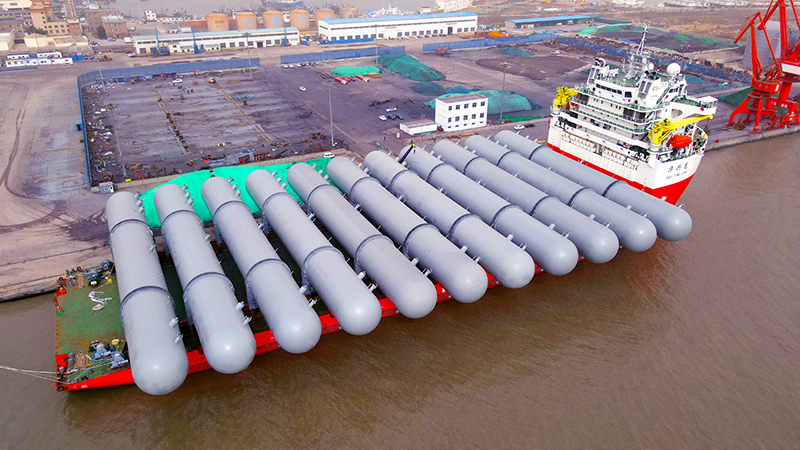 当日,由位于山东省荣成市的一家重工企业制造的超大型石油液化气储罐启运安哥拉。这些大型“巨无霸”石油液化气储罐每台直径8米、长80米、重约480吨。据了解,2022年以来,山东省荣成市从石岛港向“一带一路”国家出口大型装备160多台(套)。