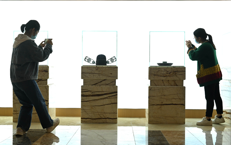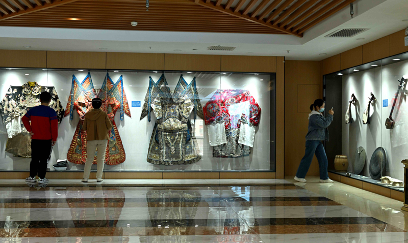 4月13日,市民在河北省石家庄丝弦艺术陈列馆参观。