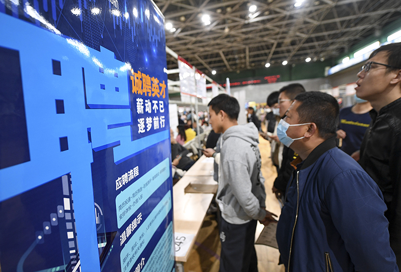 这是4月15日拍摄的2023年宁夏春季综合类大型人才招聘会现场。