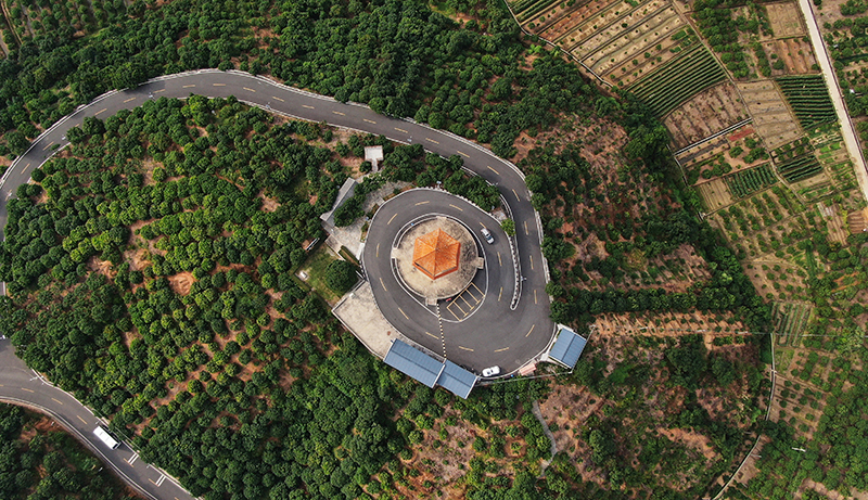 沿着平整山路,穿梭丘陵之间,满目葱翠,民居点缀其间。