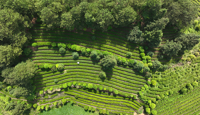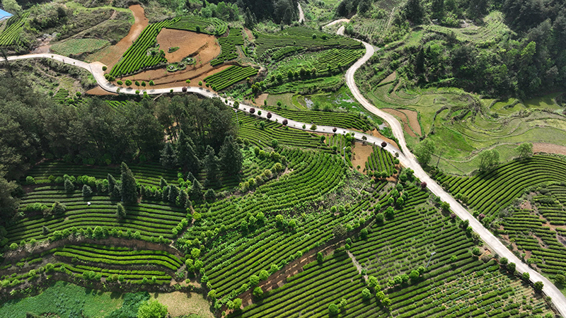 4月15日拍摄的贵州省开阳县南龙乡田坎村的茶园(无人机照片)。