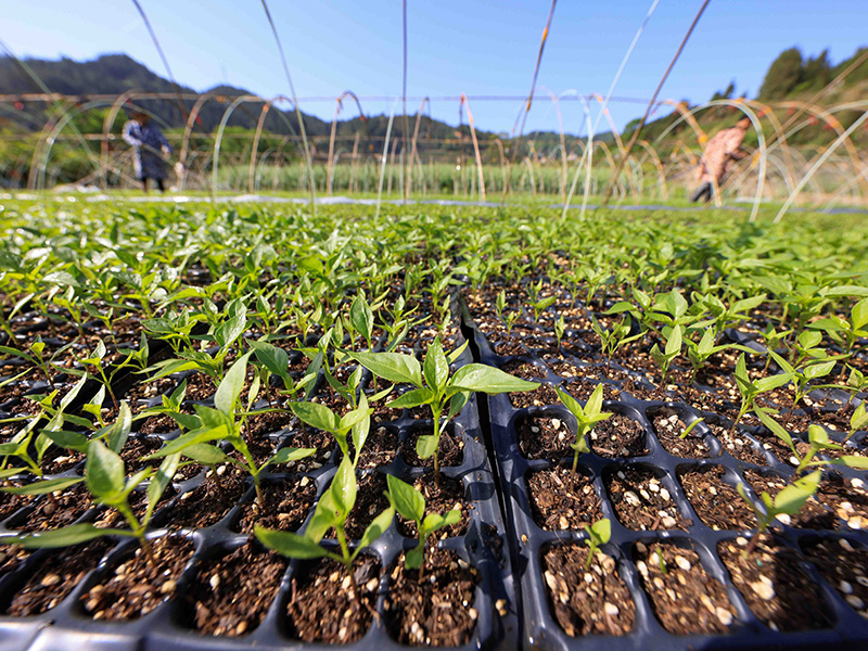 4月16日,在贵州省岑巩县注溪镇注溪村,村民在辣椒育苗基地给辣椒苗浇水。