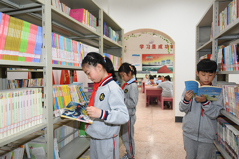 4月19日,吴兴区第一小学的学生们在图书馆借阅书籍。