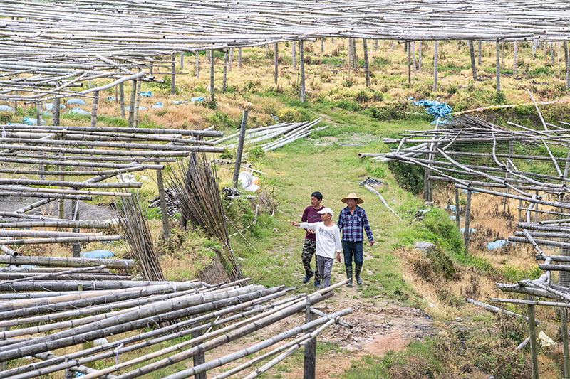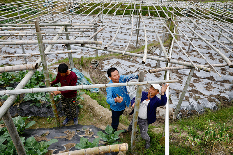 4月18日,在大湖乡东姚村湖东果蔬农民专业合作社种植基地,村民在讨论春耕春种计划。这个种植基地流转本村100多亩山垄田,发展多元果蔬种植,在增加自身收益的同时也带动了周围农户共同发展。