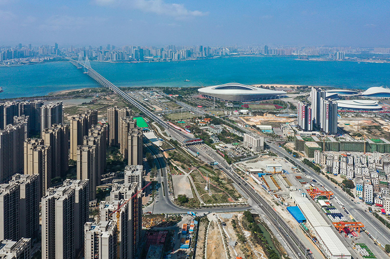 2月28日,广湛铁路湛江湾海底隧道盾构区间“过海穿城”(无人机照片)。新华社记者 刘大伟 摄
