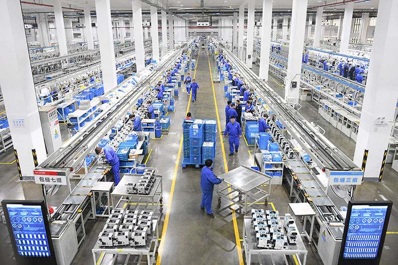3月23日,在位于浙江省台州市的杰克科技股份有限公司,工作人员在装配车间装配缝纫机。新华社记者 翁忻旸 摄