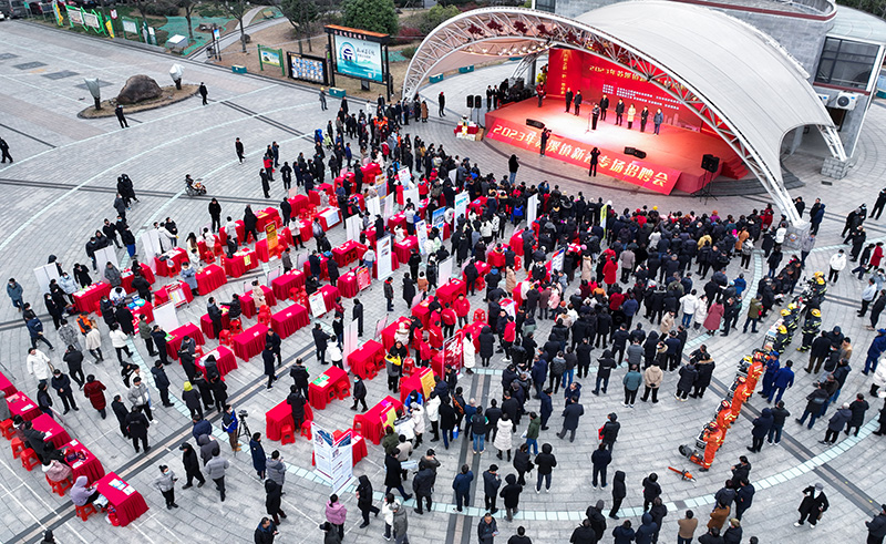 2月4日拍摄的浙江省义乌市苏溪镇“百企千岗”新春首场招聘会现场(无人机照片)。新华社记者 徐昱 摄