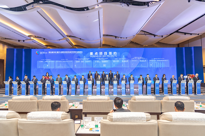 当日,第五届中新(重庆)战略性互联互通示范项目金融峰会在重庆和新加坡会场同步开幕,本届峰会共签约项目90个、合同金额1110亿元。