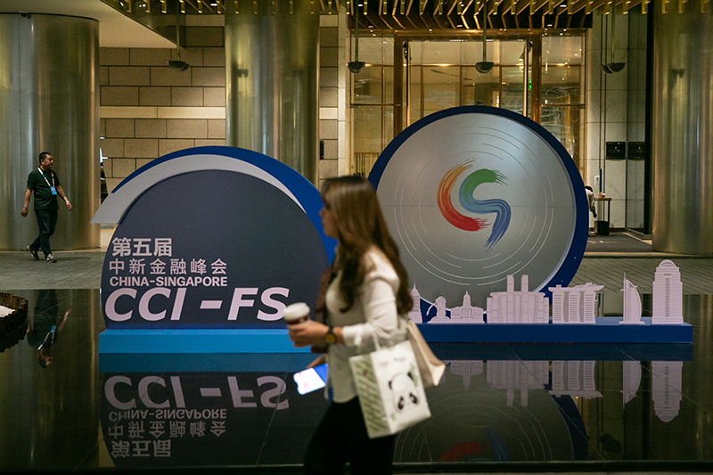 这是第五届中新(重庆)战略性互联互通示范项目金融峰会会场外景(4月20日摄)。