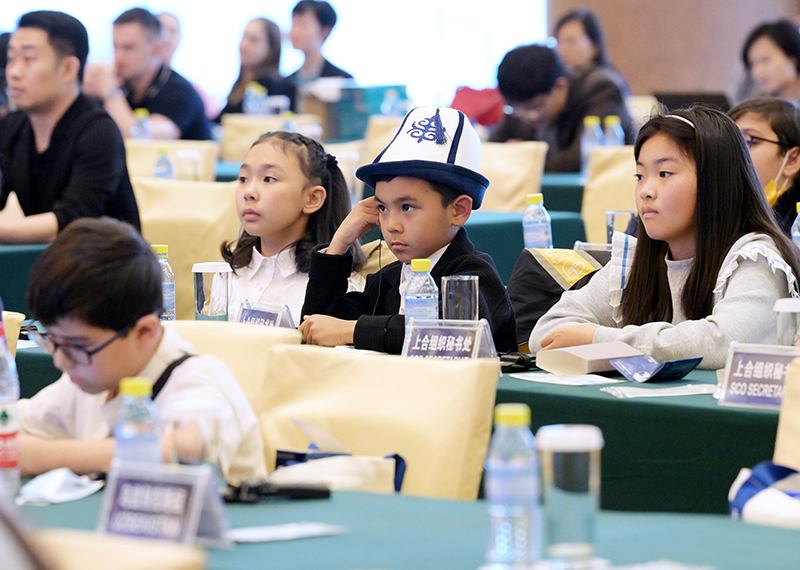 4月20日,参加活动的孩子在位于北京的主会场内认真聆听。