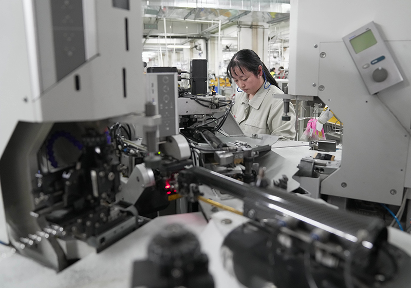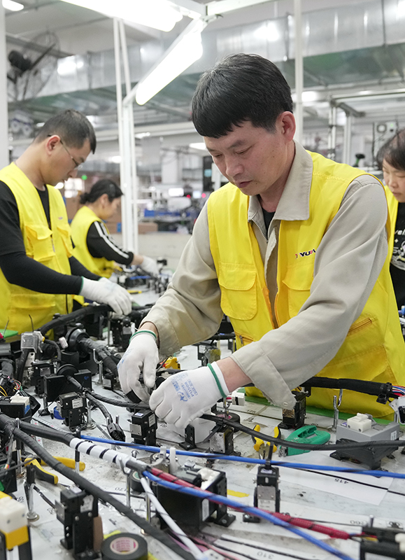 4月20日,工人在秦皇岛市海港区一家汽车电路企业的生产车间工作。