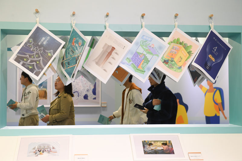 4月23日,人们在“书香满中国”公益广告展上参观。