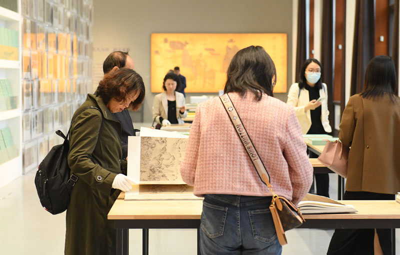 4月23日,人们在“中国历代绘画大系”特展上翻阅画册。