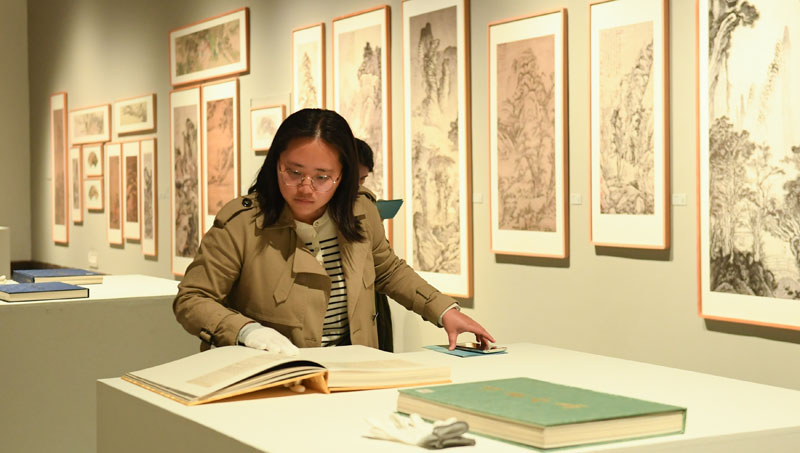 4月23日,一名女子在“中国历代绘画大系”特展上翻阅画册。