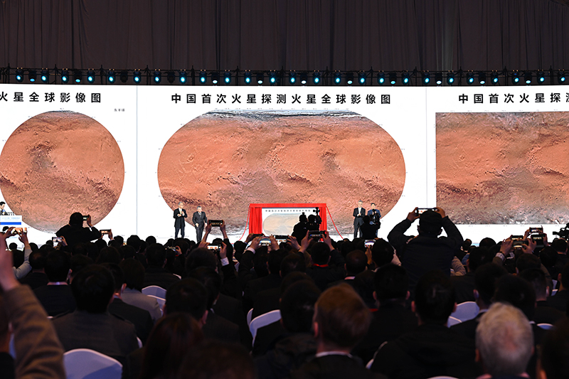4月24日,在2023年“中国航天日”主场活动启动仪式上,国家航天局和中国科学院联合发布中国首次火星探测火星全球影像图。
