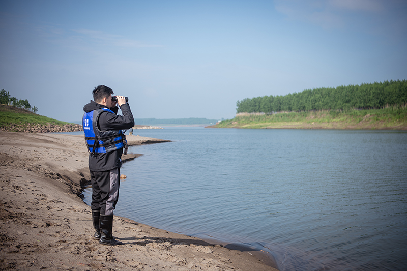 4月25日,工作人员在放归活动结束后观测江豚情况。