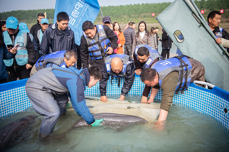 当日,来自长江天鹅洲故道的4头迁地保护长江江豚分批顺利放归进入长江干流新螺和石首江段。这是我国首次开展迁地保护长江江豚野化放归工作,此举对促进长江江豚自然种群数量回升,推动长江江豚保护技术发展具有重要意义。