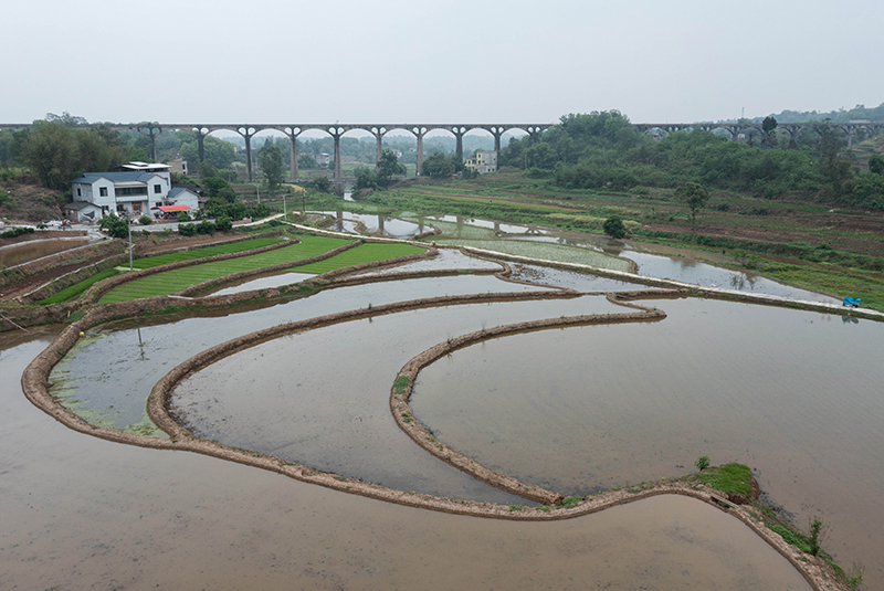 目前,四川省泸县正值插秧时节,有“人工天河”之称的泸县引水渡槽越过山丘、穿过农田,仍在引水灌溉中发挥重要作用。