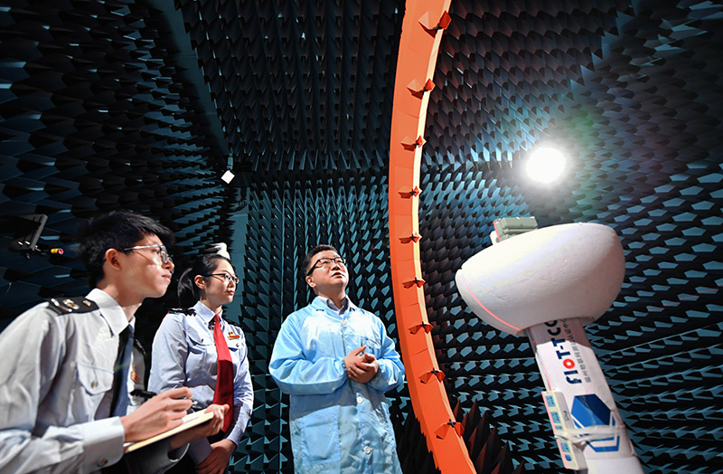 4月25日,在福州物联网开放实验室有限公司OTA天线测试实验室,福州经济技术开发区税务局工作人员在听取企业负责人的介绍。作为物联网公共服务平台,该企业2022年共计享受研发费用加计扣除160万元。