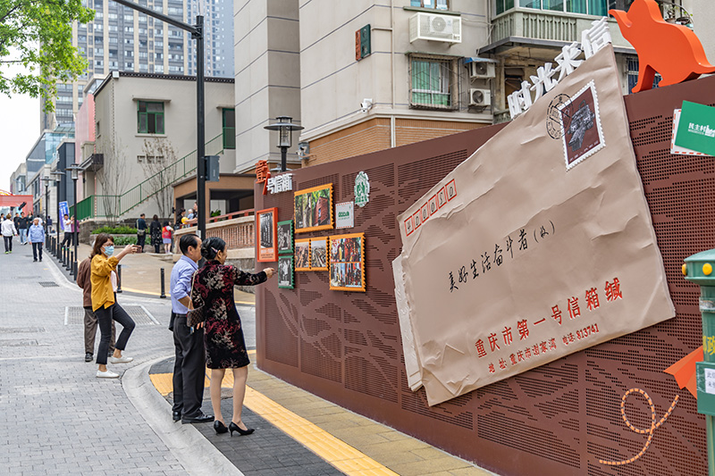 4月28日,重庆市九龙坡区谢家湾街道民主村片区城市更新项目(一期)正式竣工亮相,市民游客前来打卡。