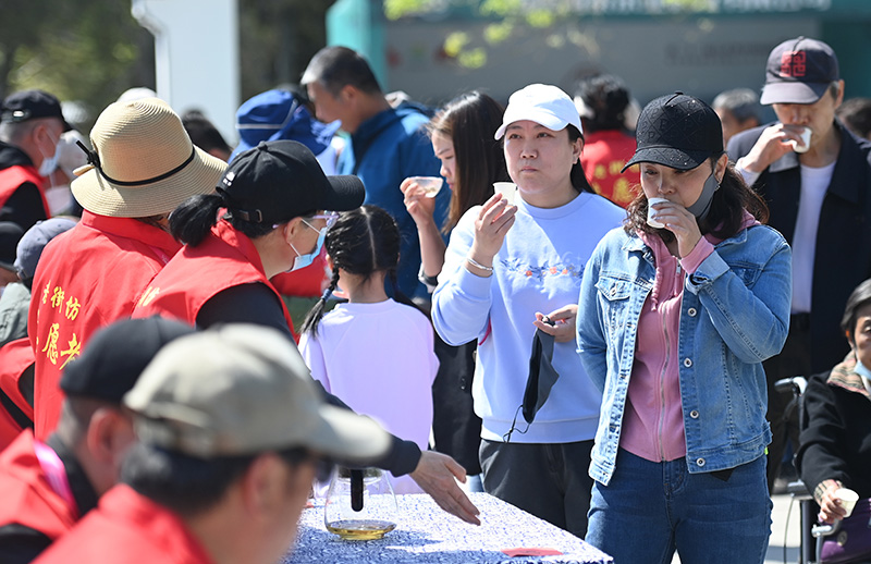 4月30日,游客在北京八大处公园举行的中国园林茶文化节百姓品鉴活动中品茶。