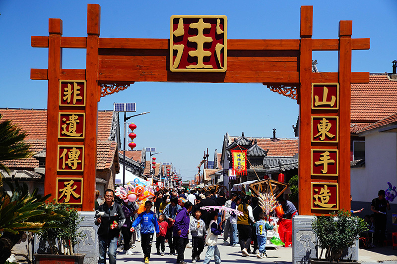 4月30日,游客在山东省利津县“老街长巷”非遗文化街游玩。
