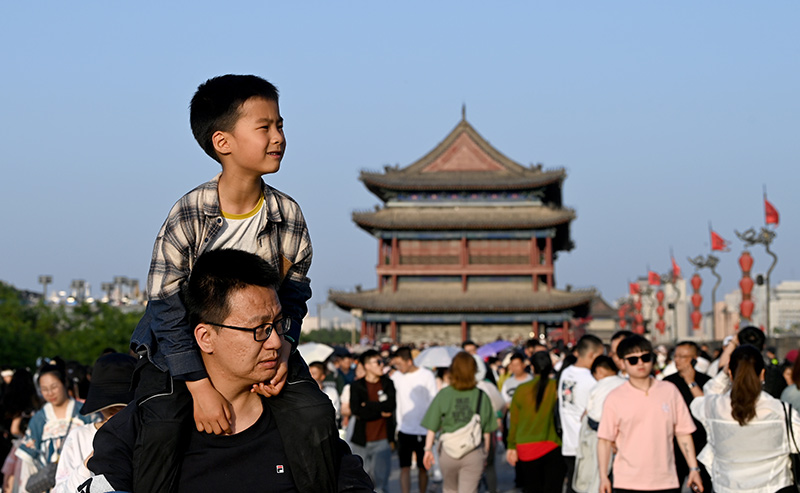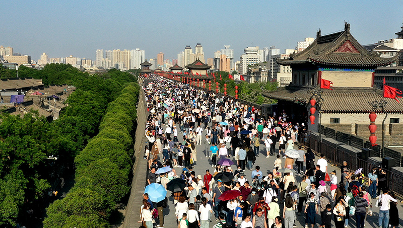 西安城墙景区作为西安热门景区之一,“五一”假期吸引了众多游客前来参观游览,单日接待量已接近饱和。据了解,为确保文物安全及游览体验,西安城墙景区每日最大承载量7万人,瞬时最大承载量2万人,临近瞬时最大承载量时,景区将采取临时限流疏导措施。