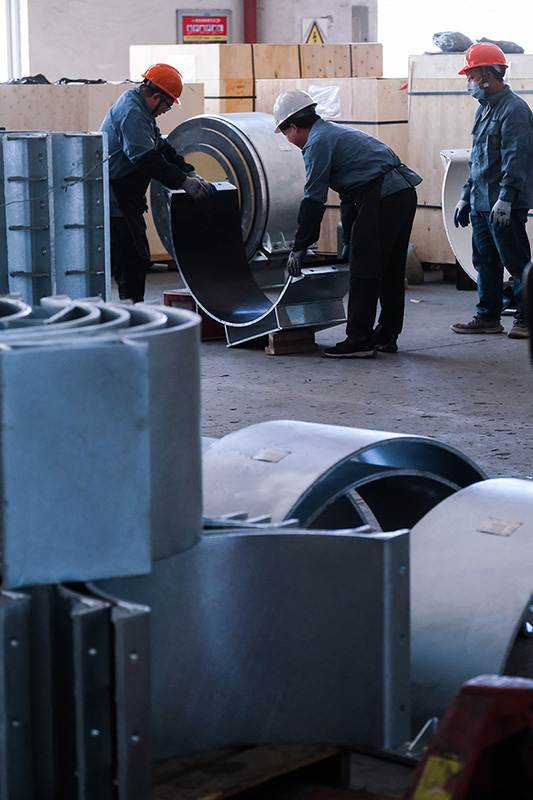 5月2日,在位于浙江省嘉兴市秀洲区王店镇的浙江振申绝热科技股份有限公司聚氨酯车间内,工人在进行管托安装工序。