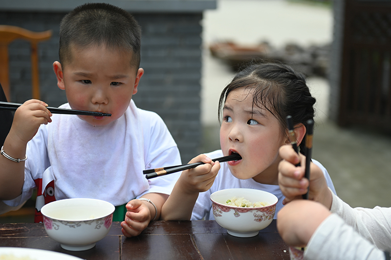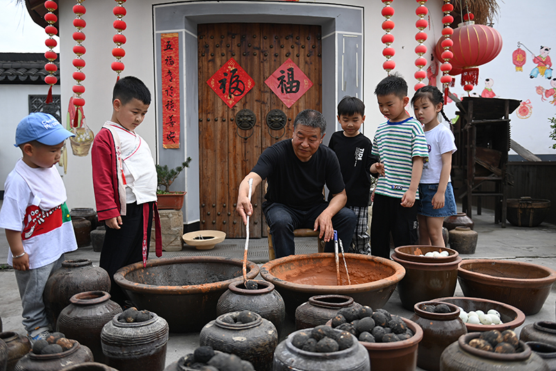 临近立夏节气,浙江省杭州市临平区塘栖镇丁山河村的村民们做米塑“立夏狗”、腌灰鸭蛋、搭土灶蒸“野米饭”等,用江南水乡传统的民俗迎接初夏。