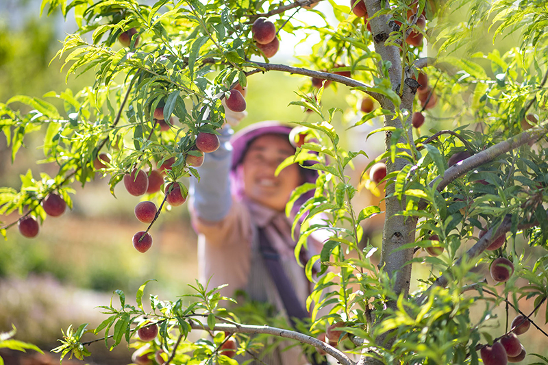 5月6日,村民在云南省文山市德厚镇千亩桃园基地采收蜜桃。